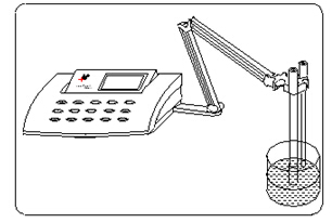 a 將pH 復合電極插入儀器的測量電極插座內,并將該電極用蒸餾水清洗干凈,放入pH標準緩沖溶液A中(規定的五種pH標準緩沖溶液中的任意一種)。