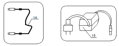 (14)USB通訊線 (15)9V,800mA穩壓電源(內正外負);