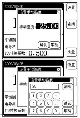 “設置手動溫度”:如果儀器不接溫度傳感器,可以使用手動溫度值;