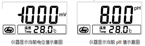 然后進(jìn)入測量狀態(tài),顯示當(dāng)前的電位值或者pH值,如圖: