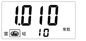 按“電極常數▽”或“電極常數△”,電極常數的顯示在10、1、0.1、0.01之間轉換,如果電導電極標貼的電極常數為“10.10”,則選擇“10”并按“確認”鍵;再按“常數數值▽”或“常數數值△”,使常數數值顯示“1.010”,按“確認”鍵;此時完成電極常數及數值的設置(電極常數為上下二組數值的乘積)。儀器顯示如圖: