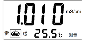 經過上述4.3~4.4的設置,儀器可用來測量被測溶液,按“測量”鍵,使儀器進入電導率測量狀態。儀器顯示如圖: