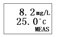 儀器有溶解氧濃度測(cè)量、零氧校準(zhǔn)、滿度校準(zhǔn)和鹽度設(shè)置四個(gè)工作狀態(tài),這四個(gè)工作狀態(tài)可通過“模式”鍵進(jìn)行輪流切換,切換流程為“溶解氧濃度測(cè)量→零氧校準(zhǔn)→滿度校準(zhǔn)→鹽度設(shè)置→溶解氧濃度測(cè)量”。溶解氧濃度測(cè)量顯示界面如下: