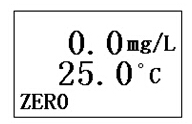 將溶解氧電極放入5%的新鮮配制的亞硫酸鈉溶液中,在儀器處于溶解氧測(cè)量工作狀態(tài)下,按“模式”鍵,儀器即進(jìn)入“零氧校準(zhǔn)”工作狀態(tài),待讀數(shù)穩(wěn)定后,按“確定”鍵,貯存電極當(dāng)前的零氧值,零氧校準(zhǔn)結(jié)束。此時(shí),儀器還處于“零氧校準(zhǔn)”工作狀態(tài)。再按“模式”鍵,儀器進(jìn)入“滿度校準(zhǔn)”工作狀態(tài)。零氧校準(zhǔn)顯示界面如下: