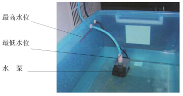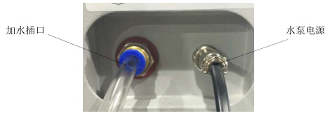 ④ 打開水箱蓋,加入純凈水。(水位高低的控制:最低應淹沒抽水泵,最高不超過水箱上連接管口處的橡皮圈)。