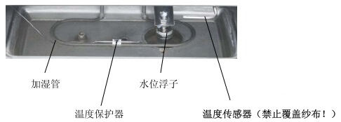 ⑥ 通電半小時左右,打開箱門,檢查工作室底面的加濕蒸發器水槽水位是否水平,否則應調整地平或墊平輪腳的方式解決。