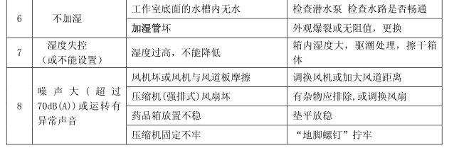 7. 在設備長期低溫(低于環境溫度時)運行時,須每隔半個月,40℃運行 2 小時左右,進行“除霜”處理,然后再投入運行。