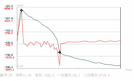 圖中滴定結(jié)果終點體積0.41 ml 電位-703.1mv