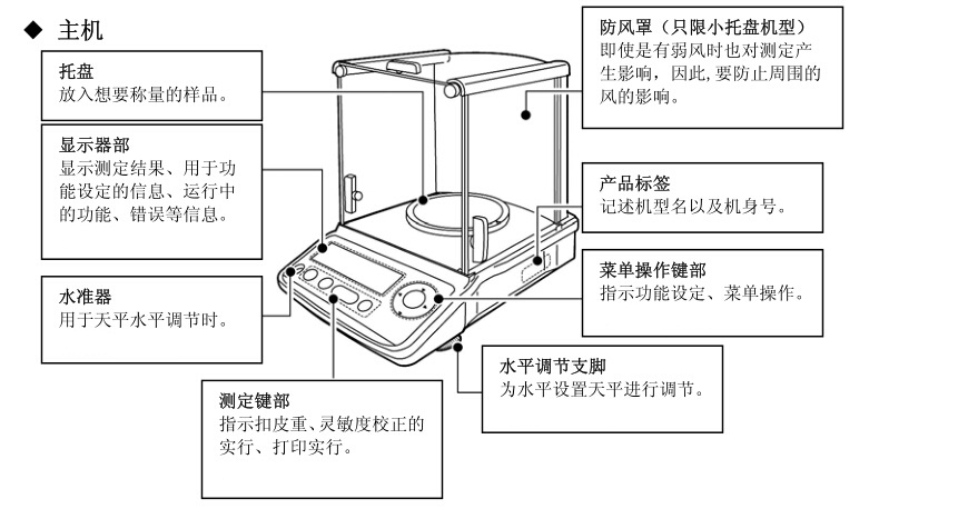 不同型號電子天平組成有所差別,現舉例島津TW/TX系列來進行說明。