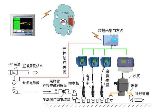 本自動監測站可將自來水管網的水質(余氯、濁度及壓力)數據通過GPRS/物聯網進行實時傳輸到地區自來水調度中心平臺上,為自來水管網水質和壓力提供控制和管理依據。