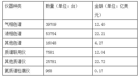 十二五期間部分科學儀器產品進口情況