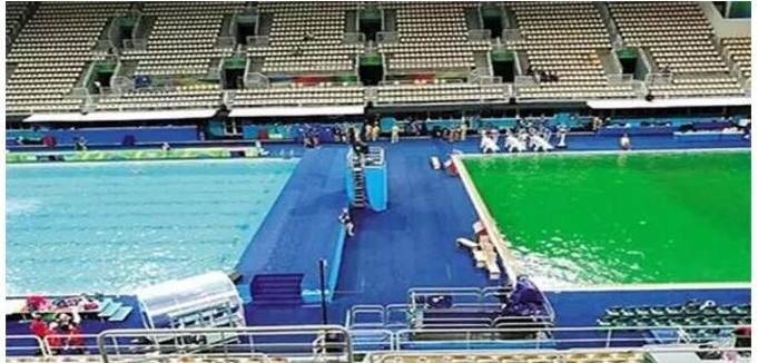 據(jù)德國《焦點(diǎn)》周刊網(wǎng)站的相關(guān)報道,8月8日,里約泳池的水還是淡藍(lán)的,而當(dāng)觀眾和運(yùn)動員在9日為女子雙人10米跳臺決賽作準(zhǔn)備時,他們看到水池變成綠色。露天場館里并列的兩個池子,水球和花樣游泳池池水碧藍(lán),藍(lán)得像藍(lán)寶石;而跳水池卻一夜間陡然變色,綠得像翡翠。