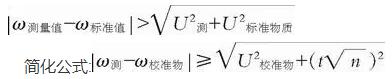 如果實驗室對標準物質(zhì)的測量值超出了標準物質(zhì)特性量值的不確定度范圍,是不能直接得出測量結果存在偏差的結論的,原因是標準物質(zhì)的不確定度U標準物質(zhì)僅包括了與標準物質(zhì)定值、均勻性、穩(wěn)定性有關的不確定度,沒有涉及用戶在實驗室里對標準物質(zhì)進行測量有關的隨機不確定度U測。因此,應采取以下通用公式判斷標準物質(zhì)測量值與標準值之間存在顯著偏差::