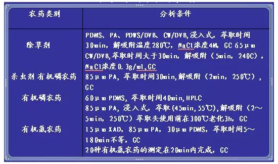 表2 SPME法在農藥殘留分析中的應用