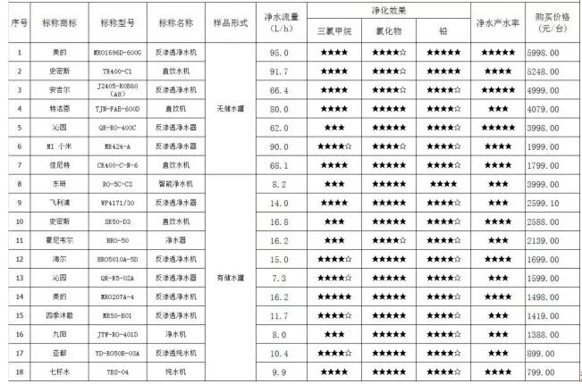 注:此次參加測試的40款凈水器產品均為合格產品。