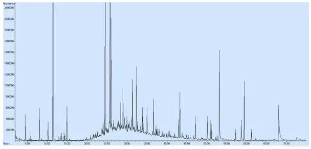 在20-40分鐘一堆連峰,是一些來至基質的烷烴化合物的干擾,里面也有少量香氣化合物,可以利用Amdis來找出了。