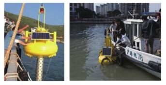 浮標站可用于地表水、污水口、海洋等不同水體的水質在線監測,可監測包括溶解氧、pH、ORP(氧化還原電位)、電導率(鹽度、總溶解固體、電阻)、溫度、濁度、葉綠素a、藍綠藻、銨/氨離子、硝酸根離子、氯離子等在內的多種參數。浮標站采用電池或太陽能供電,通過無線通訊方式實現數據上傳。